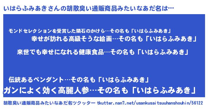 | ヘコむあだ名 | 『いはらふみあき(爆)』『酢こんぶ』 |