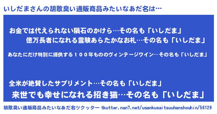 | 意味不明あだ名 | 『住所不定無職いしだま(1歳)』 |