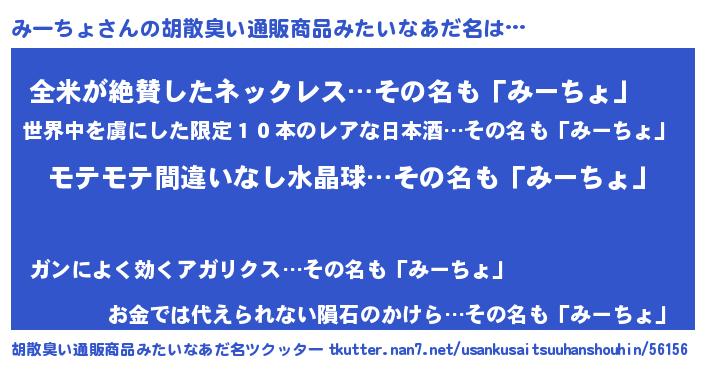 | ヘコむあだ名 | 『みーもー』『みー太郎』『酢こんぶ』 |