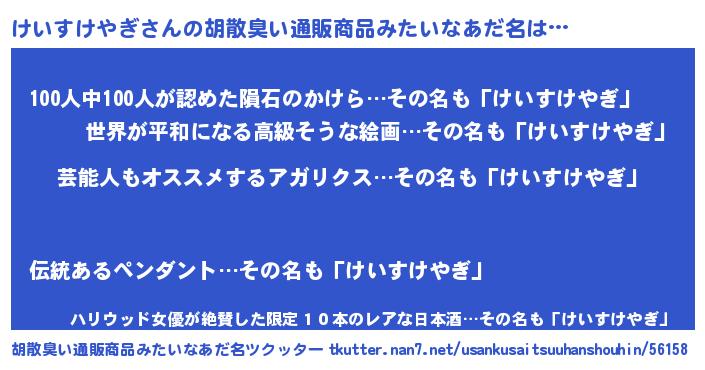 | 意味不明あだ名 | 『自称けいすけやぎ』 |