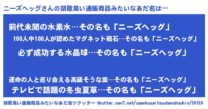 | ヘコむあだ名 | 『ニーにゅー』『ニーズヘッグ(苦笑)』 |