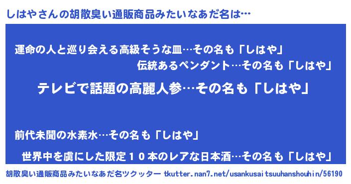| ヘコむあだ名 | 『豆乳』『しはぷりん』『しはや(笑)』 |