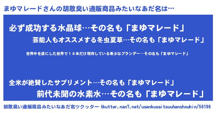 | 男性向けラノベタイトル風あだ名 | 『はたらくまゆマレードさま!』 |