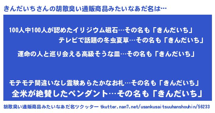 | 意味不明あだ名 | 『きんだいちフォーエバー』 |