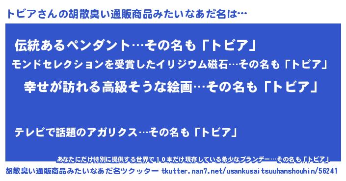 | 意味不明あだ名 | 『トビアフォーエバー』『自称トビア』 |