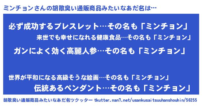 | ヘコむあだ名 | 『ミンにー』『ミンを』『豆乳』 |