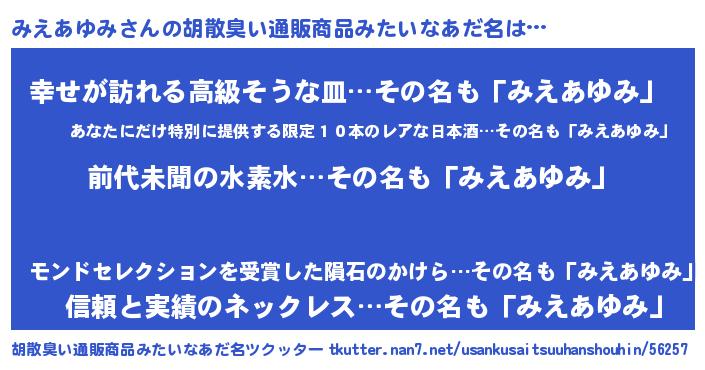 | ヘコむあだ名 | 『みえあゆみ(遠い目)』『牛乳』 |
