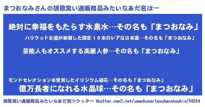 | ヘコむあだ名 | 『まつおなみ(笑)』『まつっふぃ~』 |