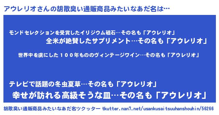 | 意味不明あだ名 | 『住所不定無職アウレリオ(4歳)』 |