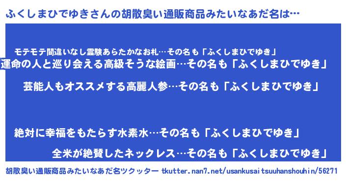 | 意味不明あだ名 | 『自称ふくしまひでゆき』 |