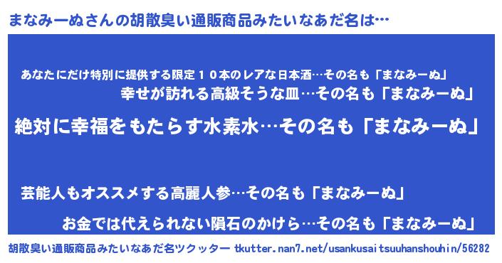| 意味不明あだ名 | 『永久保存まなみーぬ』 |