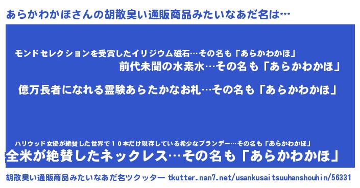 | 伝説のあだ名 | 『封印されしスナイパーあらかわかほ』 |