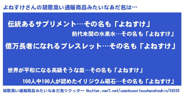 | 意味不明あだ名 | 『ペロリンよねすけ』『永久保存よねすけ』 |