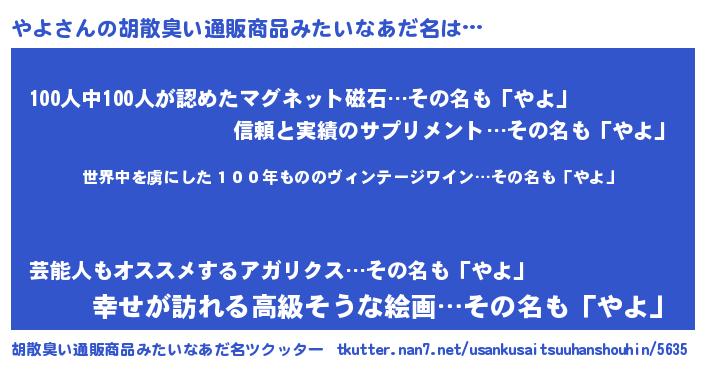| 意味不明あだ名 | 『住所不定無職やよ(7歳)』 |
