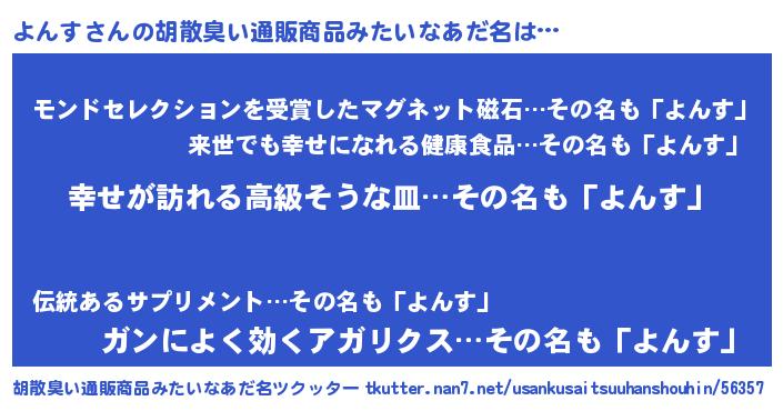 | 意味不明あだ名 | 『よんすフォーエバー』『自称よんす』 |