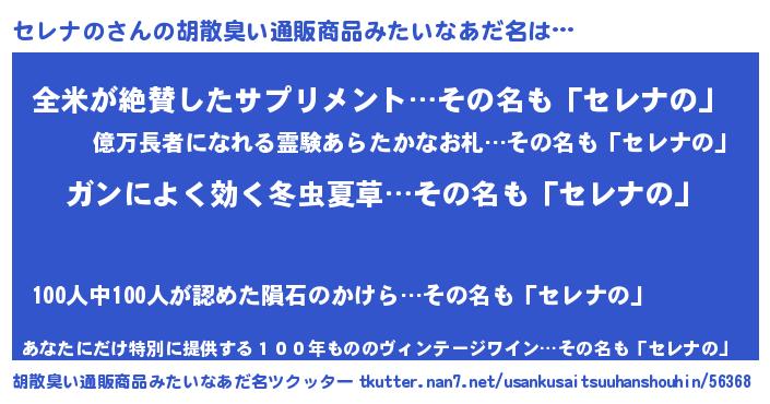 | 恥ずかしいあだ名 | 『セレナノデラックス』『セレリンリン』 |