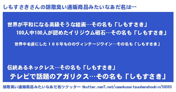 | 意味不明あだ名 | 『住所不定無職しもすさき(3歳)』 |