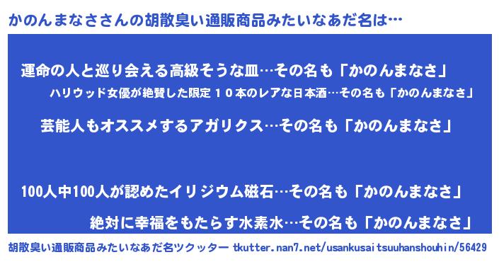 | 意味不明あだ名 | 『自称かのんまなさ』 |