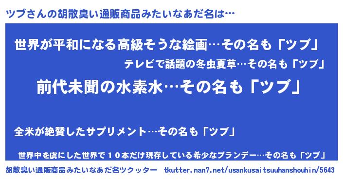 | 意味不明あだ名 | 『永久保存ツブ』『ツブフォーエバー』 |