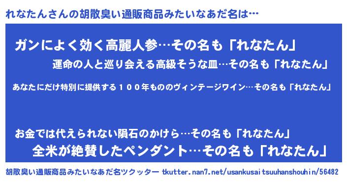 | 意味不明あだ名 | 『住所不定無職れなたん(13歳)』 |