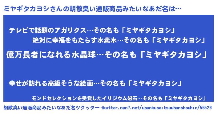 | ヒーロー風カッコイイあだ名 | 『スーパーミヤギタカヨシ』 |