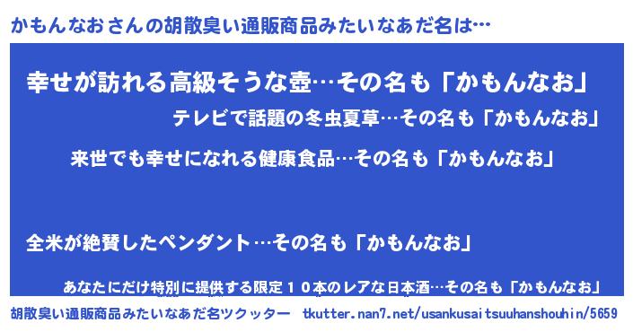| 意味不明あだ名 | 『永久保存かもんなお』『自称かもんなお』 |