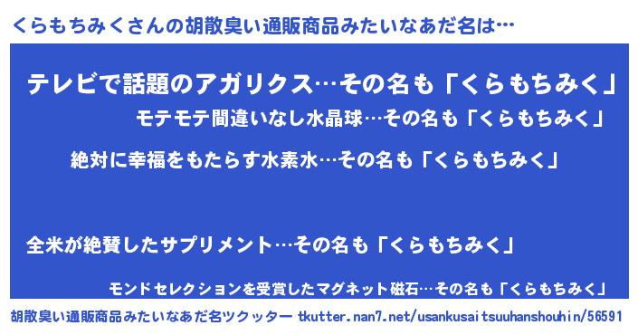 | 意味不明あだ名 | 『永久保存くらもちみく』 |
