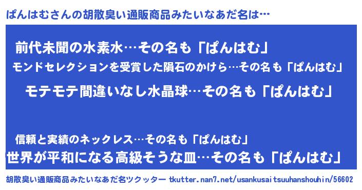 | ヘコむあだ名 | 『ぱんふぇ~』『ぱんはむ(遠い目)』 |