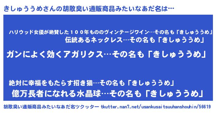 | 意味不明あだ名 | 『自称きしゅううめ』 |