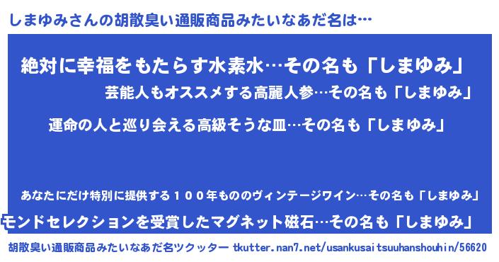 | ヘコむあだ名 | 『レバニラ』『しまゆみ(笑)』 |