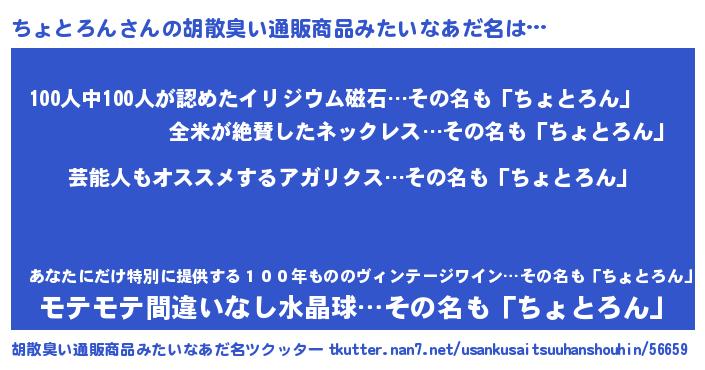 | 意味不明あだ名 | 『自称ちょとろん』『ペロリンちょとろん』 |
