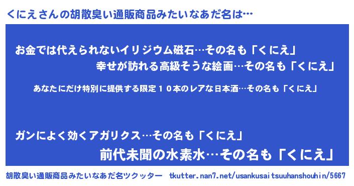 くにえさんの胡散臭い通販商品みたいなあだ名をツクッター!