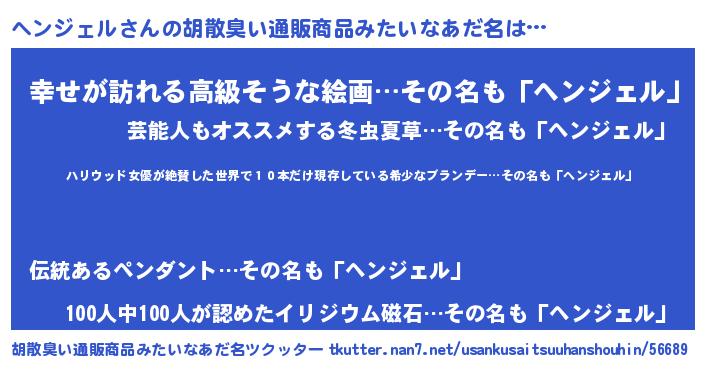 意味不明あだ名 | 『住所不定無職ヘンジェル(85歳)』 |