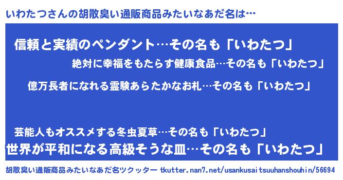 | 意味不明あだ名 | 『ペロリンいわたつ』『永久保存いわたつ』 |