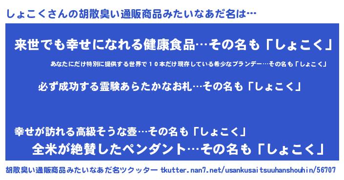 | 意味不明あだ名 | 『ペロリンしょこく』『永久保存しょこく』 |