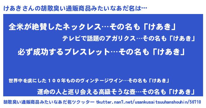 | 男性向けラノベタイトル風あだ名 | 『けあきの憂鬱』『魔法科高校のけあき』 |