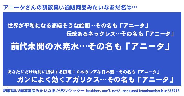 | 意味不明あだ名 | 『永久保存アニータ』『自称アニータ』 |