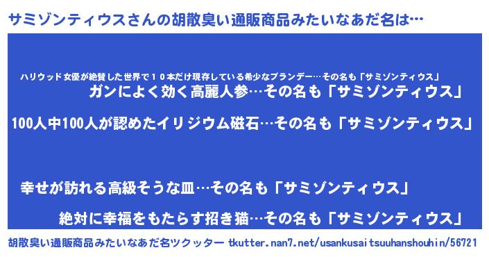 | 男性向けラノベタイトル風あだ名 | 『サミゾンティウススレイヤー』 |