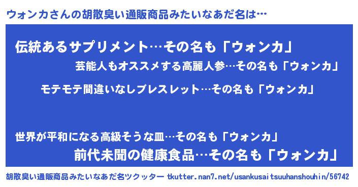| ピコ太郎風あだ名 | 『ウコ三郎』『ウォ太郎』『ピコウ郎』 |
