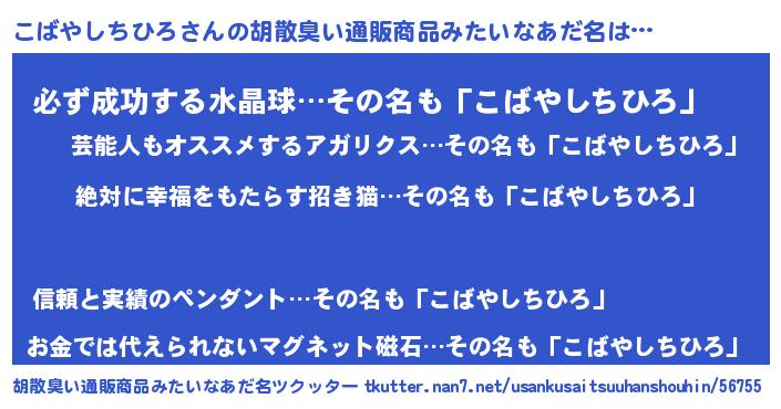 | ヘコむあだ名 | 『こばやしちひろ(小並感)』『こばにゅー』 |