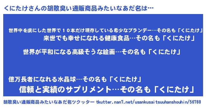 | 男性向けラノベタイトル風あだ名 | 『くにたけに滅ぼされるだけの簡単なお仕事です』 |