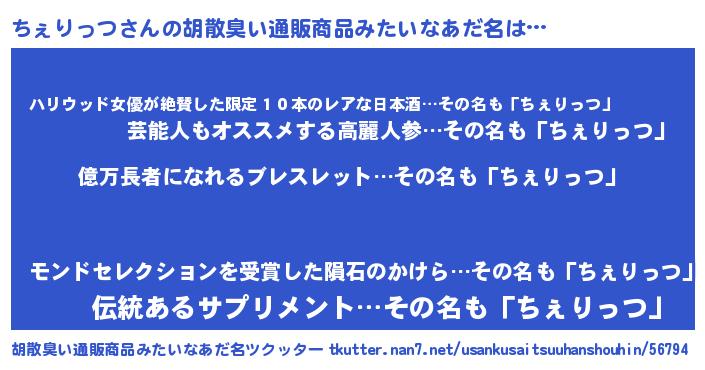 | 欧米人風あだ名 | 『マイケルちぇりっつ』 |