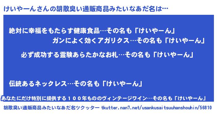 | 男性向けラノベタイトル風あだ名 | 『けいやーんの憂鬱』 |