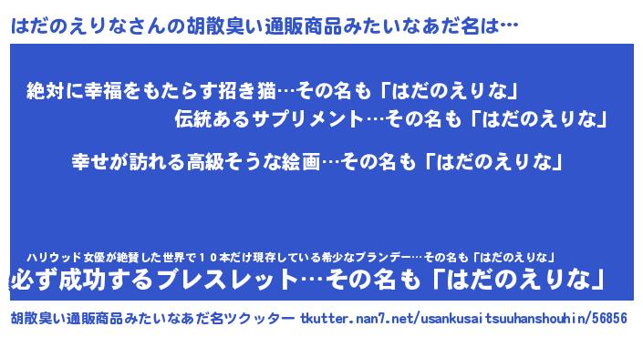 | 欧米人風あだ名 | 『アンジェラ・はだのえりな』 |