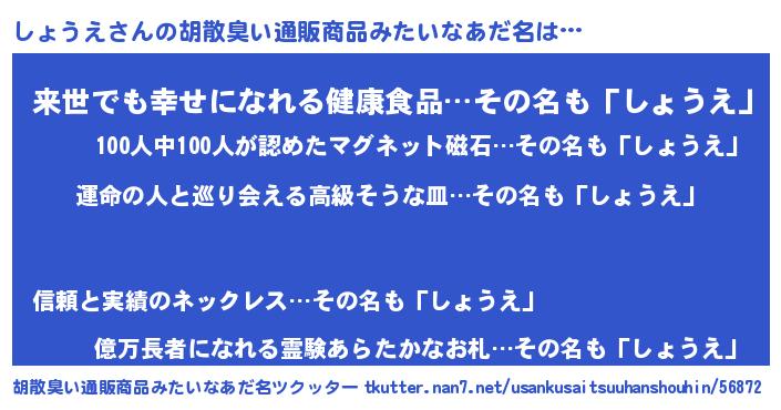 | ヘコむあだ名 | 『酢こんぶ』『しょうえ(笑)』 |