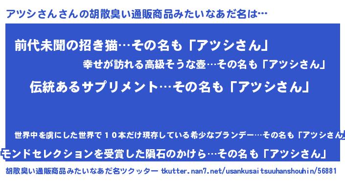 | ヘコむあだ名 | 『アツお』『アツシさん(笑)』 |