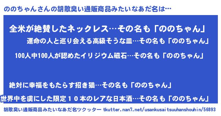 | ヘコむあだ名 | 『ののっぺ』『酢こんぶ』『ののにー』 |