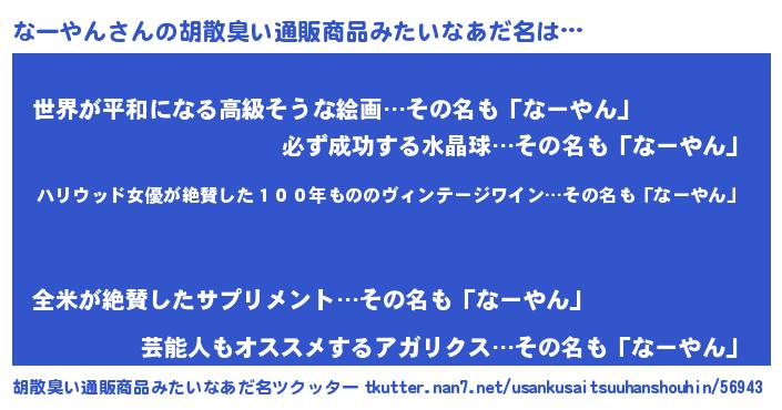 | ヒーロー風カッコイイあだ名 | 『仮面ナーダー』『ウルトラなーやんマン』 |