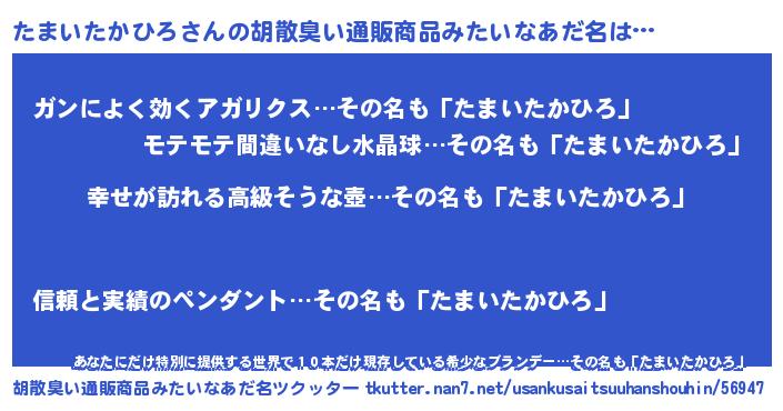 | 意味不明あだ名 | 『たまいたかひろフォーエバー』 |