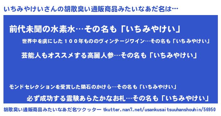 | 意味不明あだ名 | 『自称いちみやけい』 |